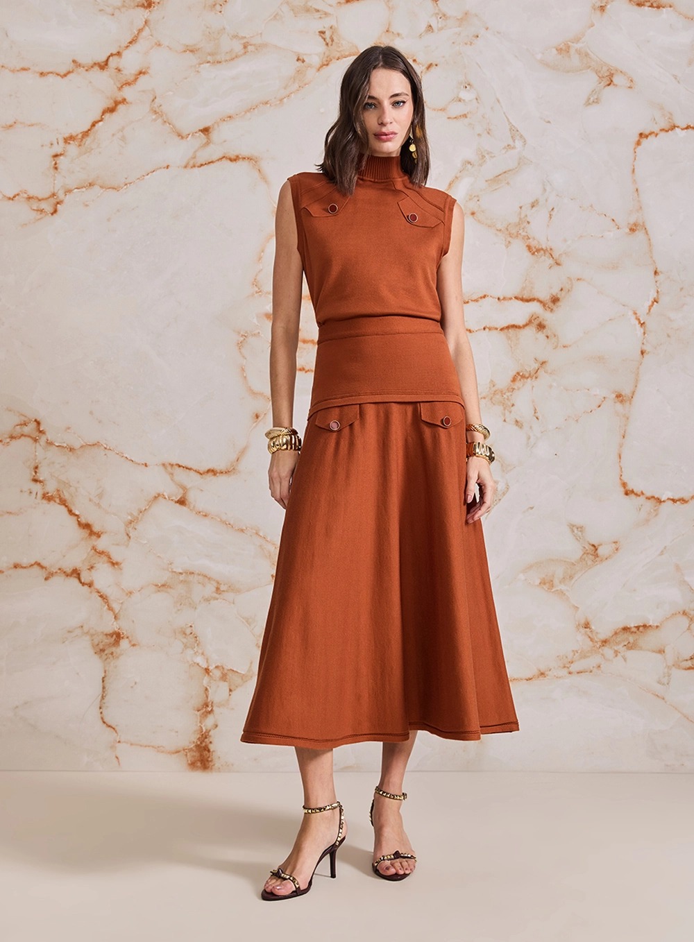 Conjunto Blusa E Saia Safari